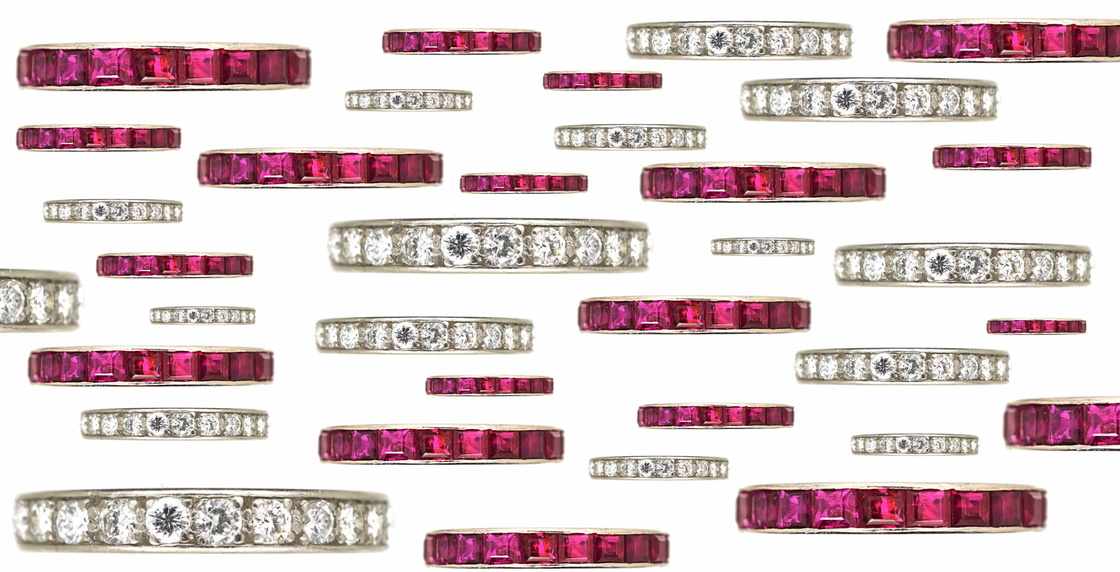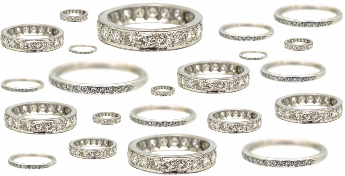 The modern eternity ring took shape in the 1960s, thanks to the discovery of small diamonds in the Soviet Union. Since these diamonds were too small for traditional engagement rings, jewellers began setting them around bands, marketing them to husbands as meaningful gifts for anniversaries and other post-wedding commitments.